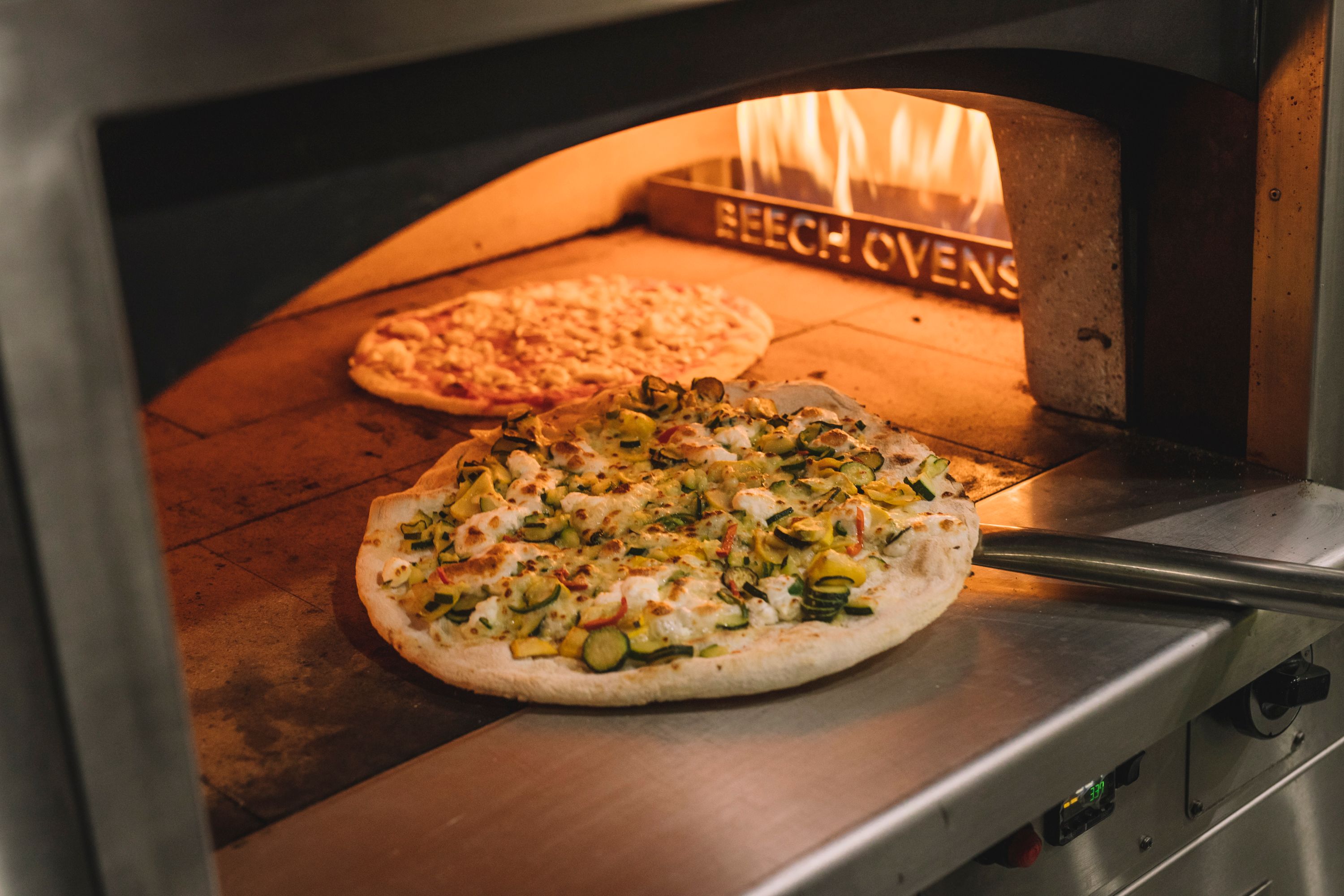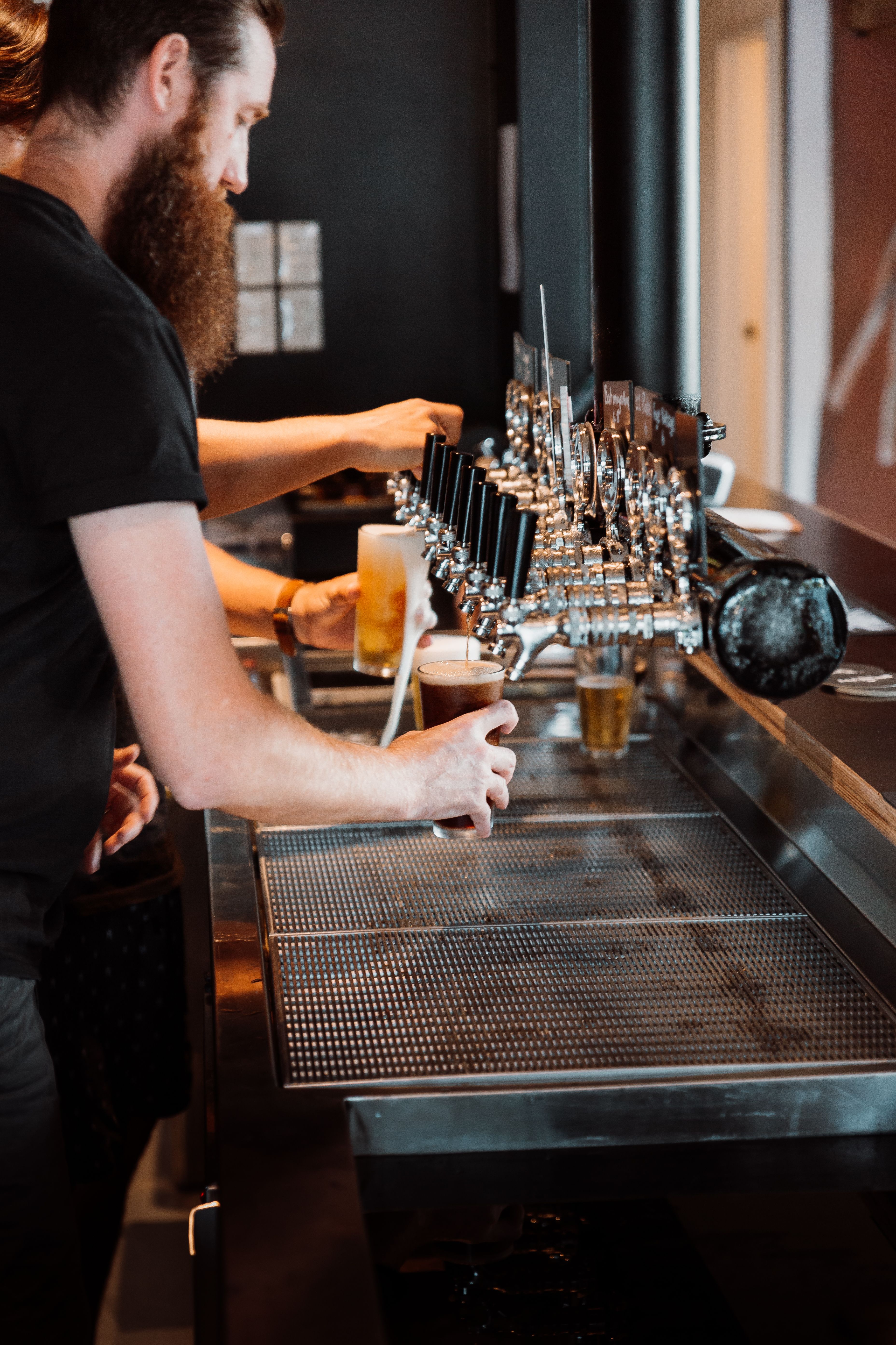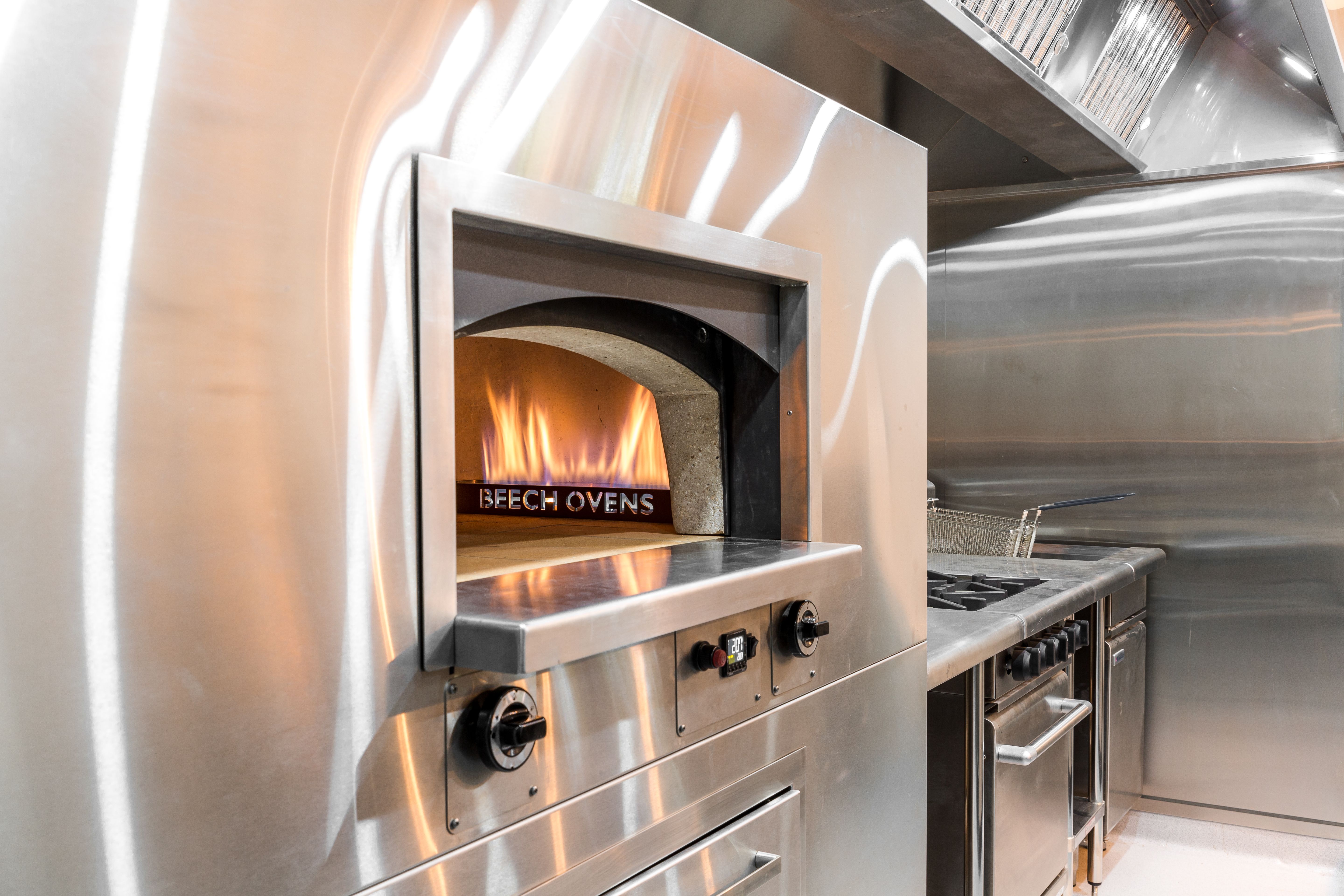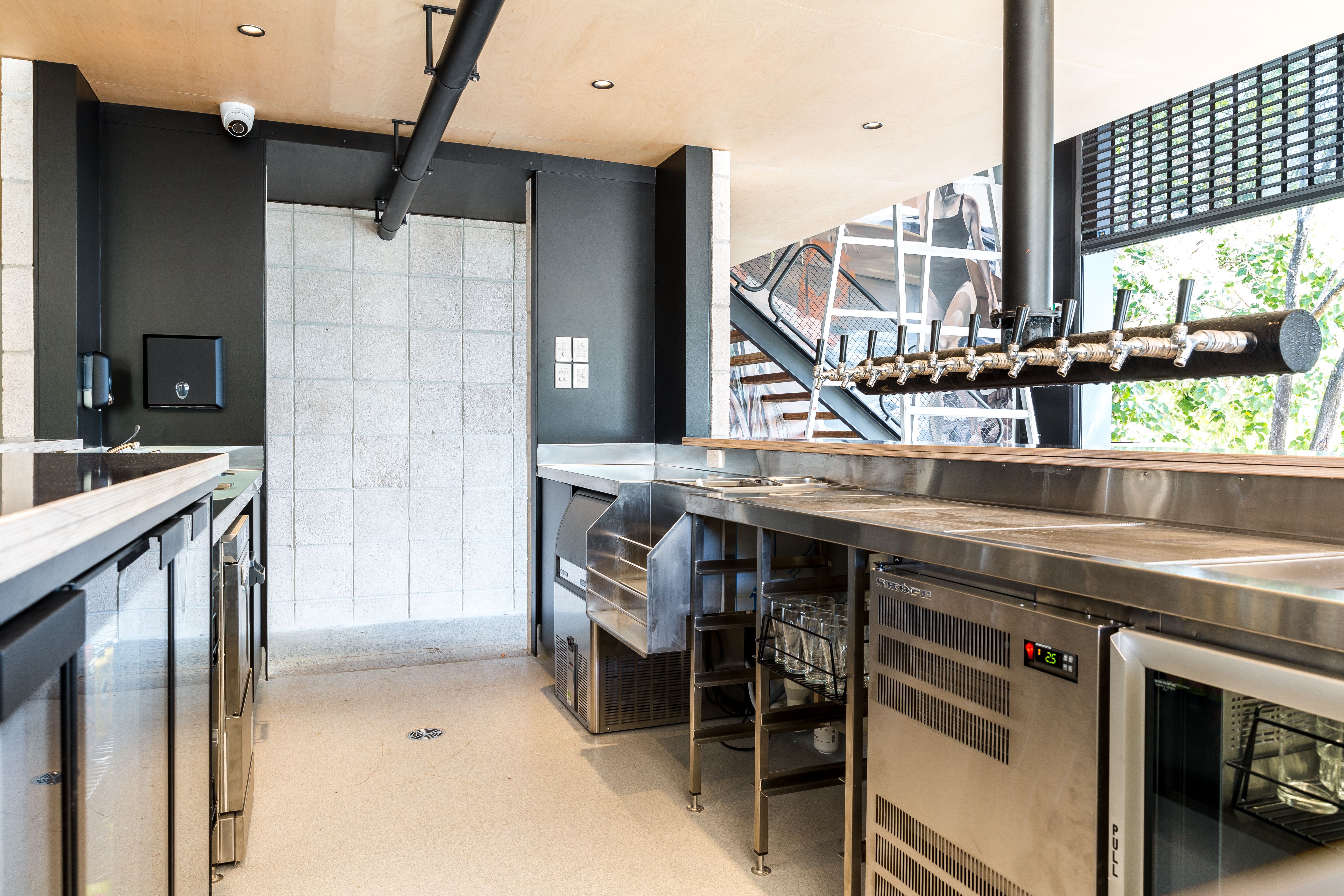 The dual-fuel woodfired pizza oven is the hero of the kitchen alongside a generous cookline. All taproom refrigeration was integrated below bar height and with clean lines to respect the architectural design and not compete for focus with the taps and adjacent brewhouse. A custom powder coated fount hung from the overhead ceiling reticulated beer and tied the service point to the source.