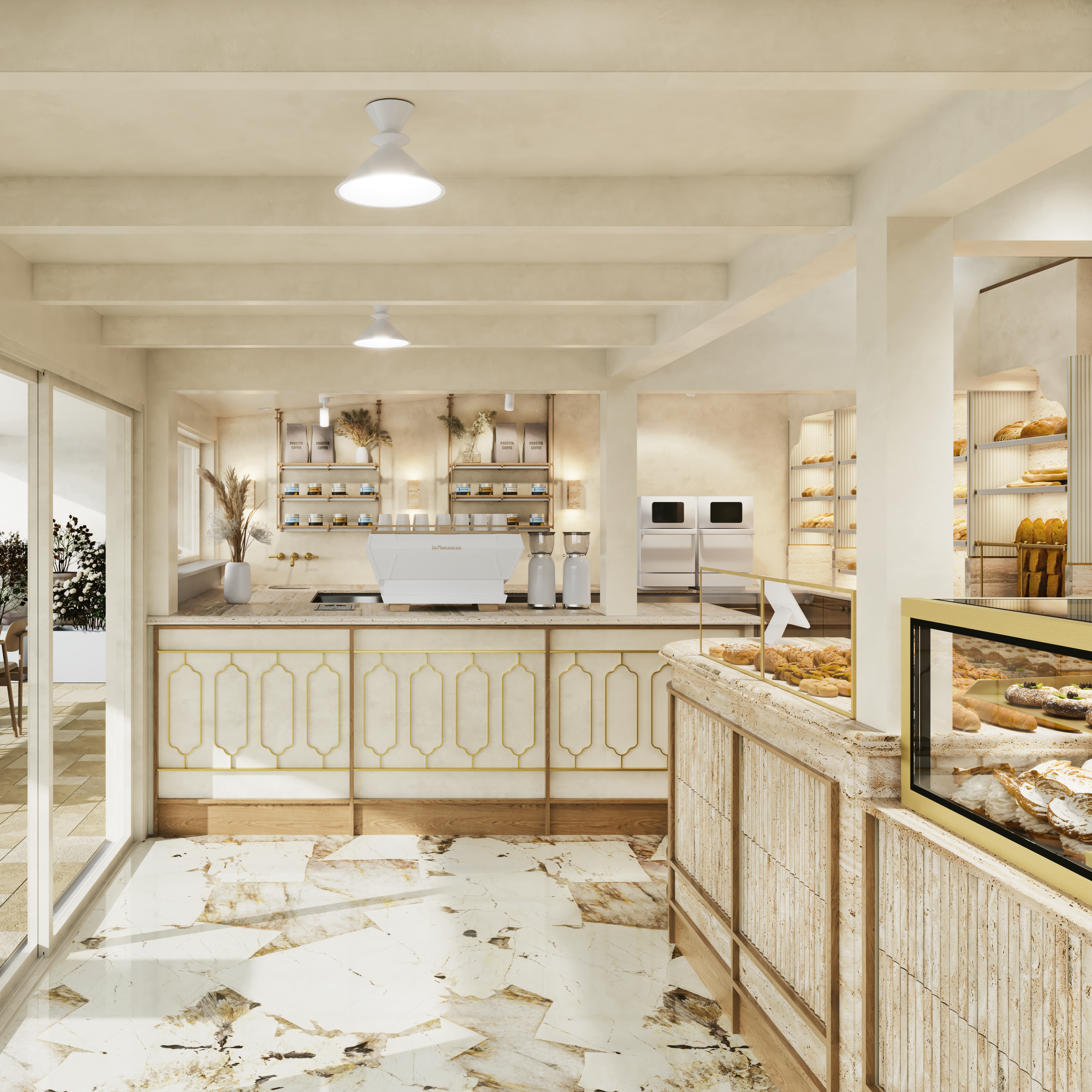 Key to this transformation was working closely with the existing building, optimising the layout to establish an efficient workflow while addressing noise constraints and respecting the neighbouring properties. The result is a welcoming space perfect for grabbing a coffee and pastry on a morning stroll to the markets or enjoying a relaxing moment across from the river.