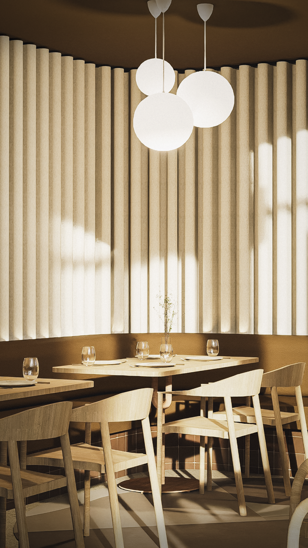 The long and dual entry shape of the tenancy formed form the backbone for the design, using bespoke timber work to create zoned dining areas with custom fixed furniture.