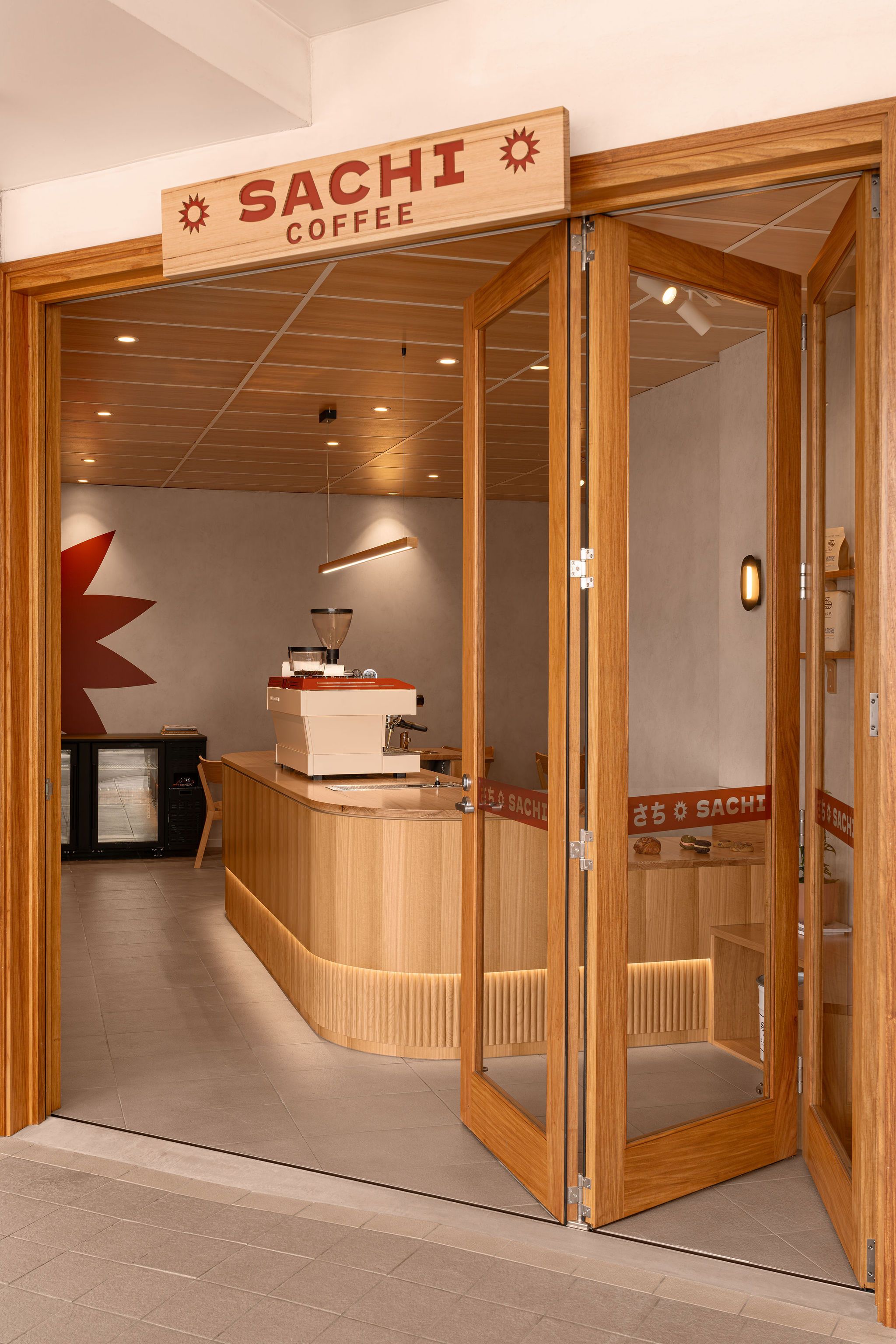 From the minimal wall decal on the back wall that introduces the brand without overwhelming the visual language to the custom metal trims on the coffee machines. Sachi Coffee's identity is expressed subtly, yet cohesively.