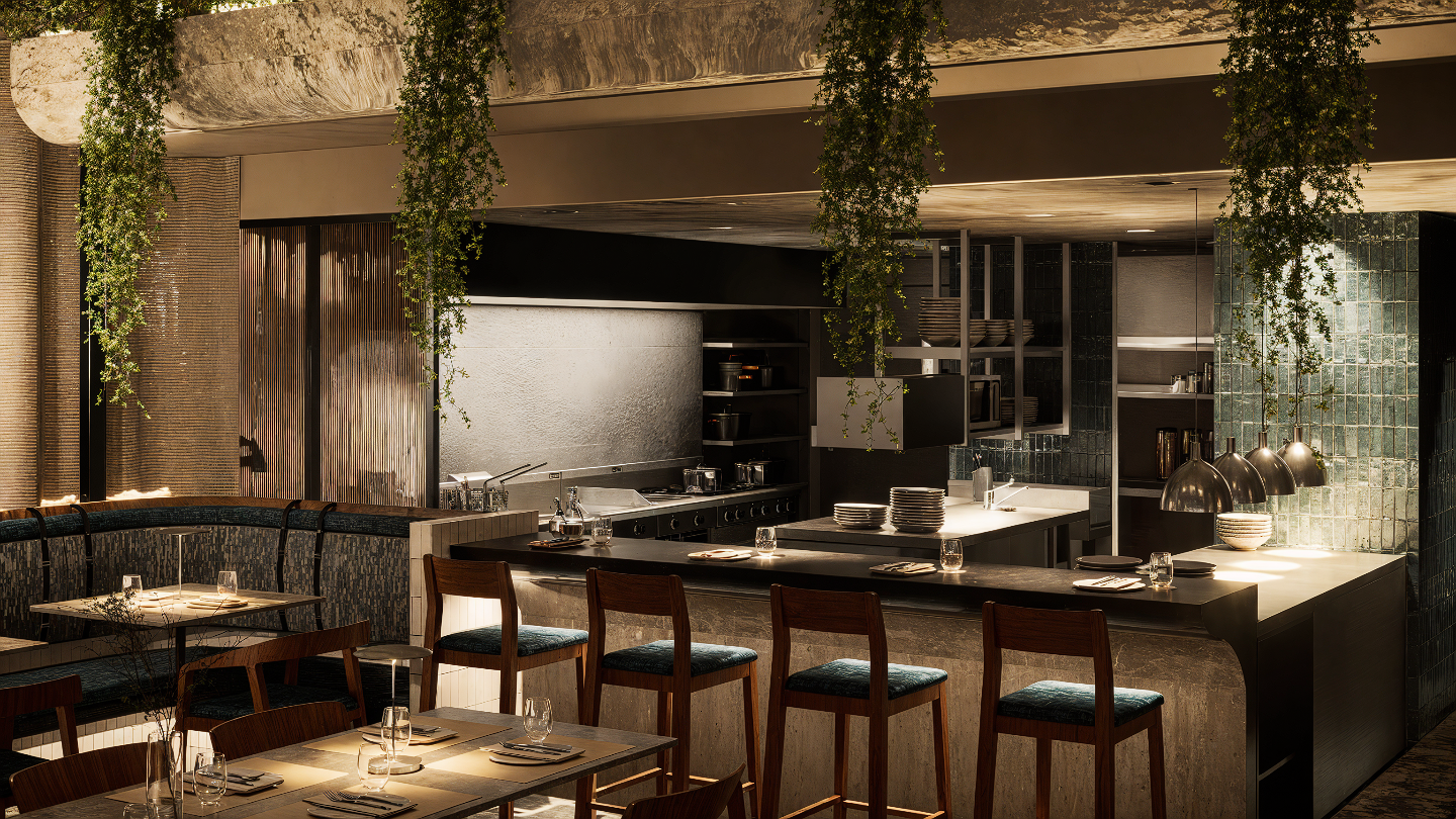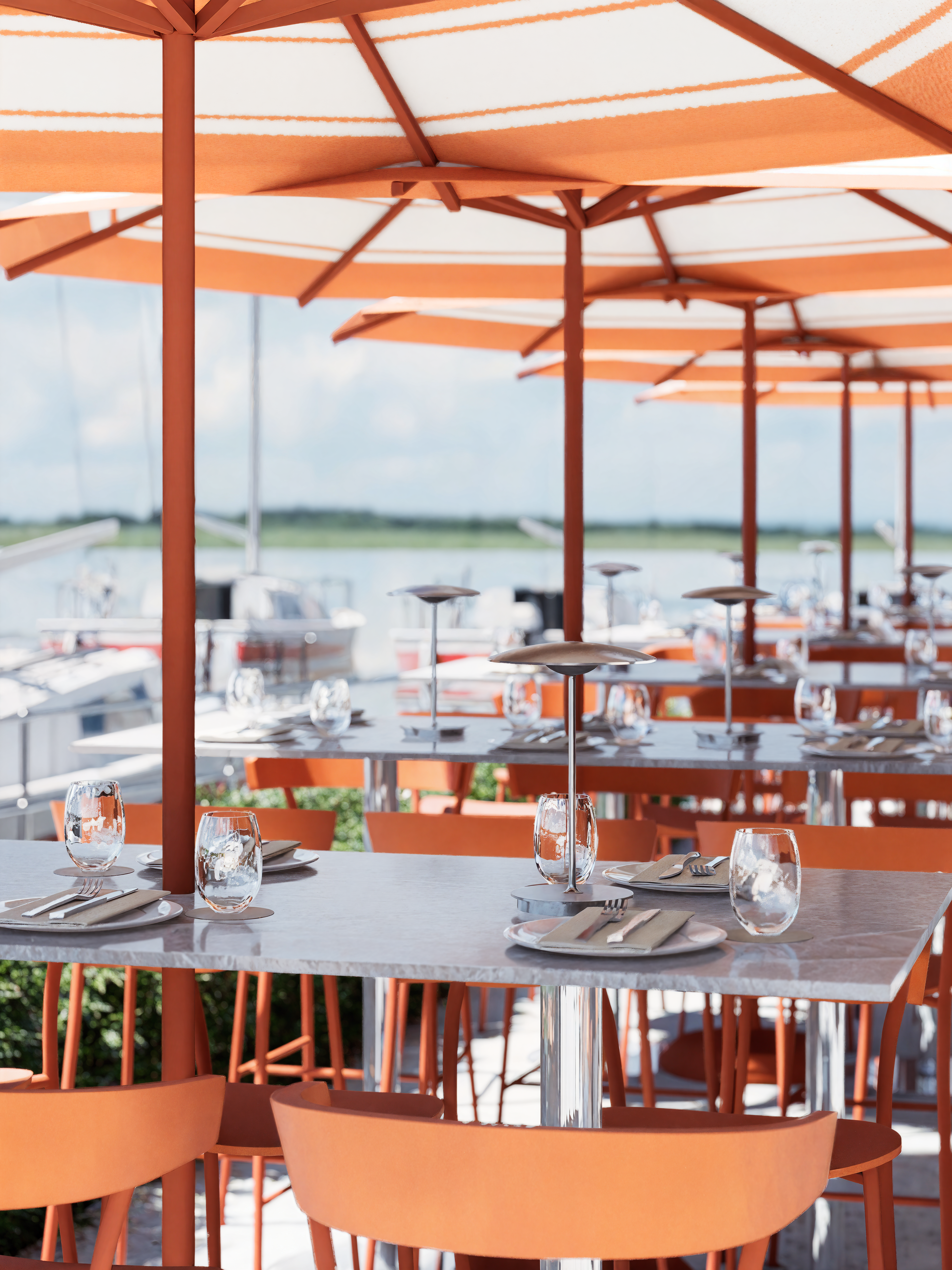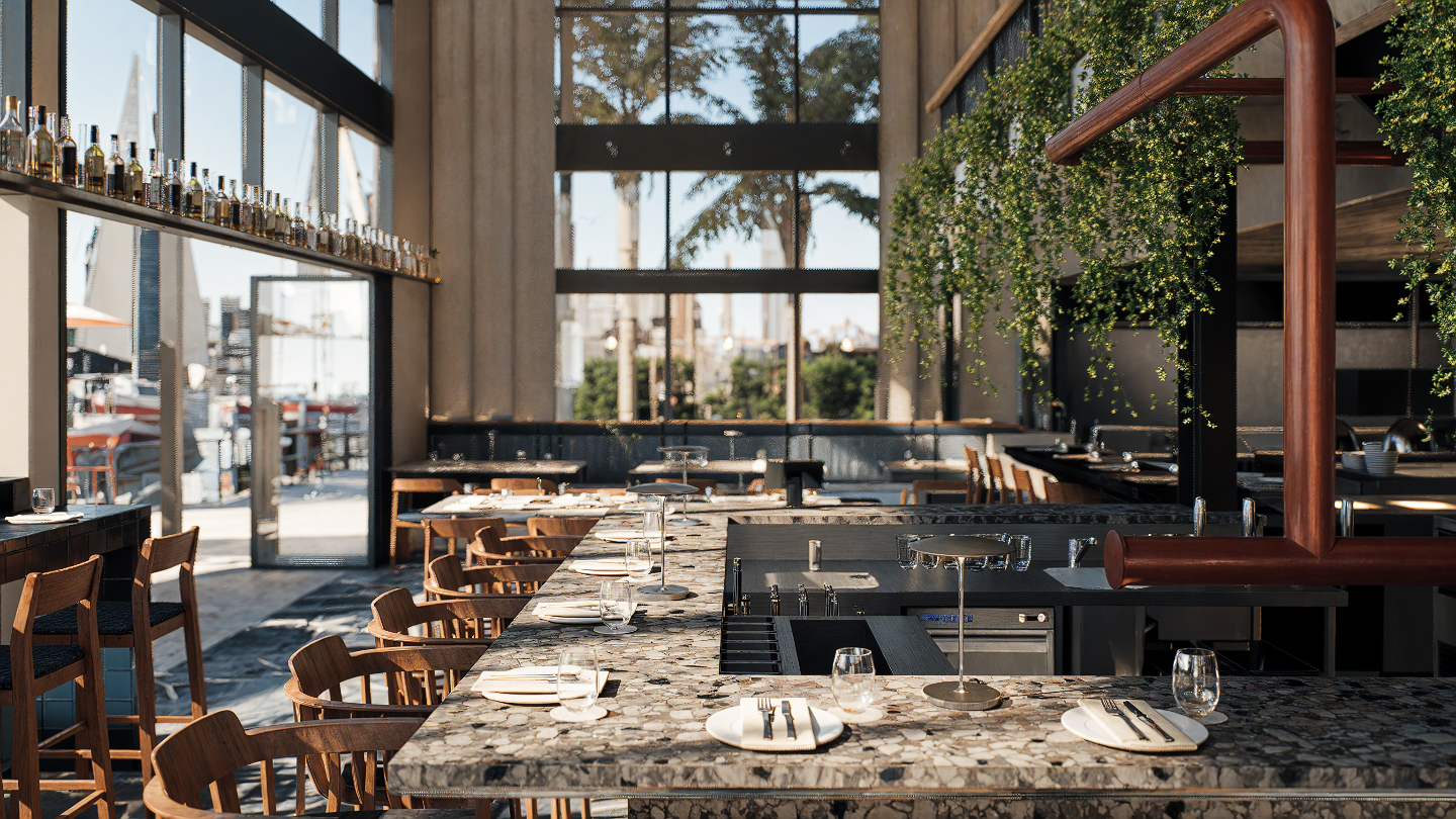 Creating a subtle reflection of its surroundings, this venue blends refined design with relaxed luxury. Our intention was to evoke versatile and indirect references to the sea and marina through carefully selected materials and transitional colours.