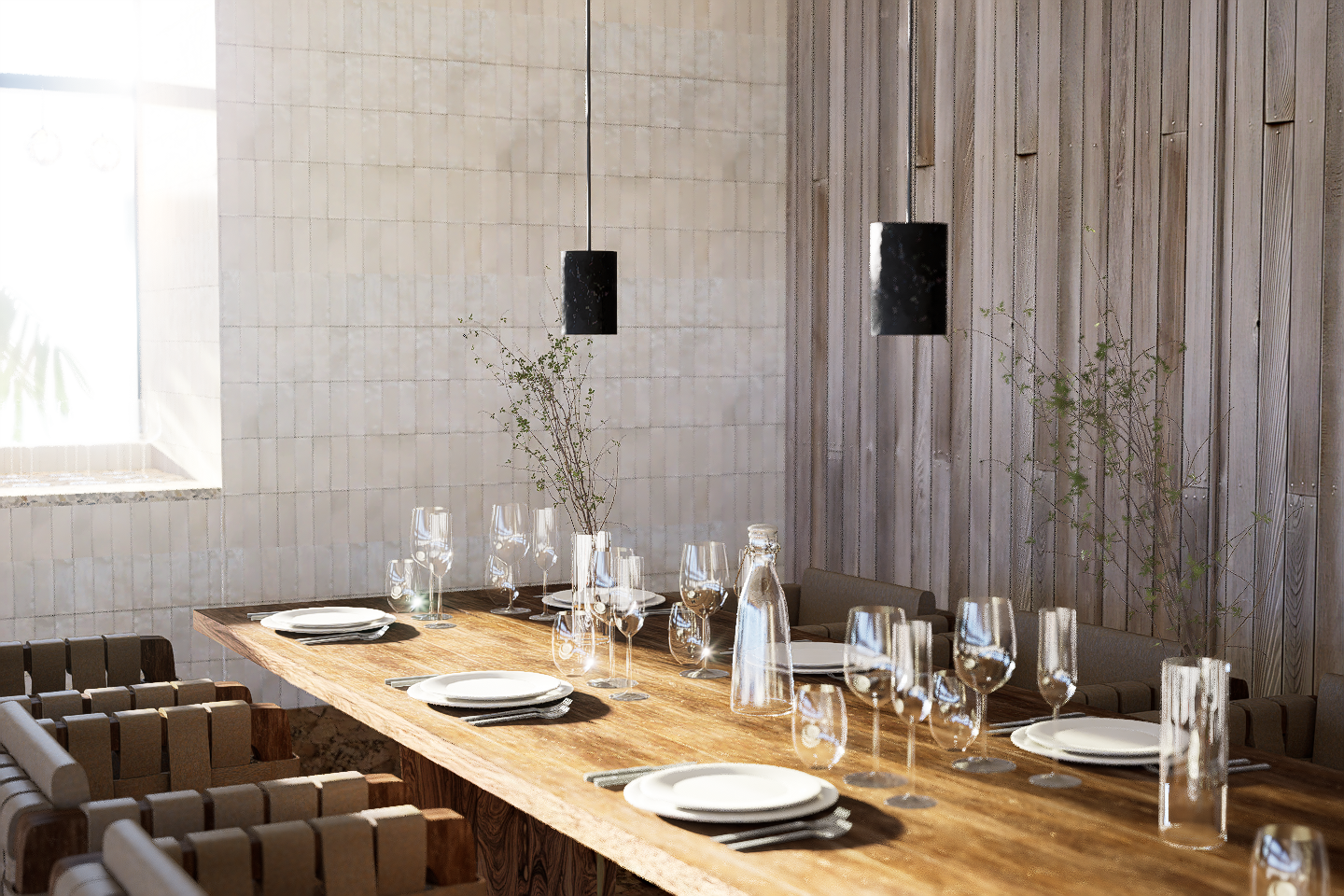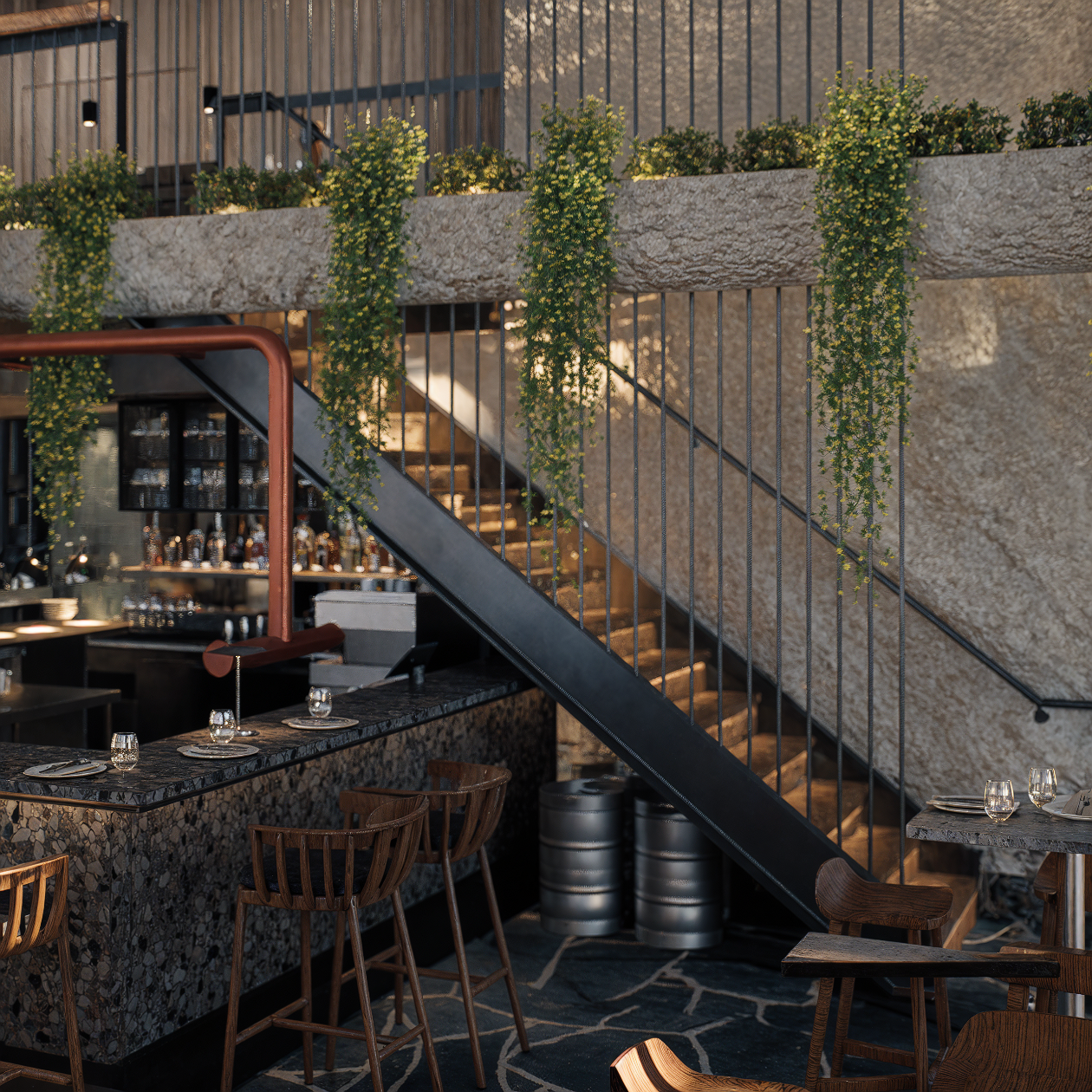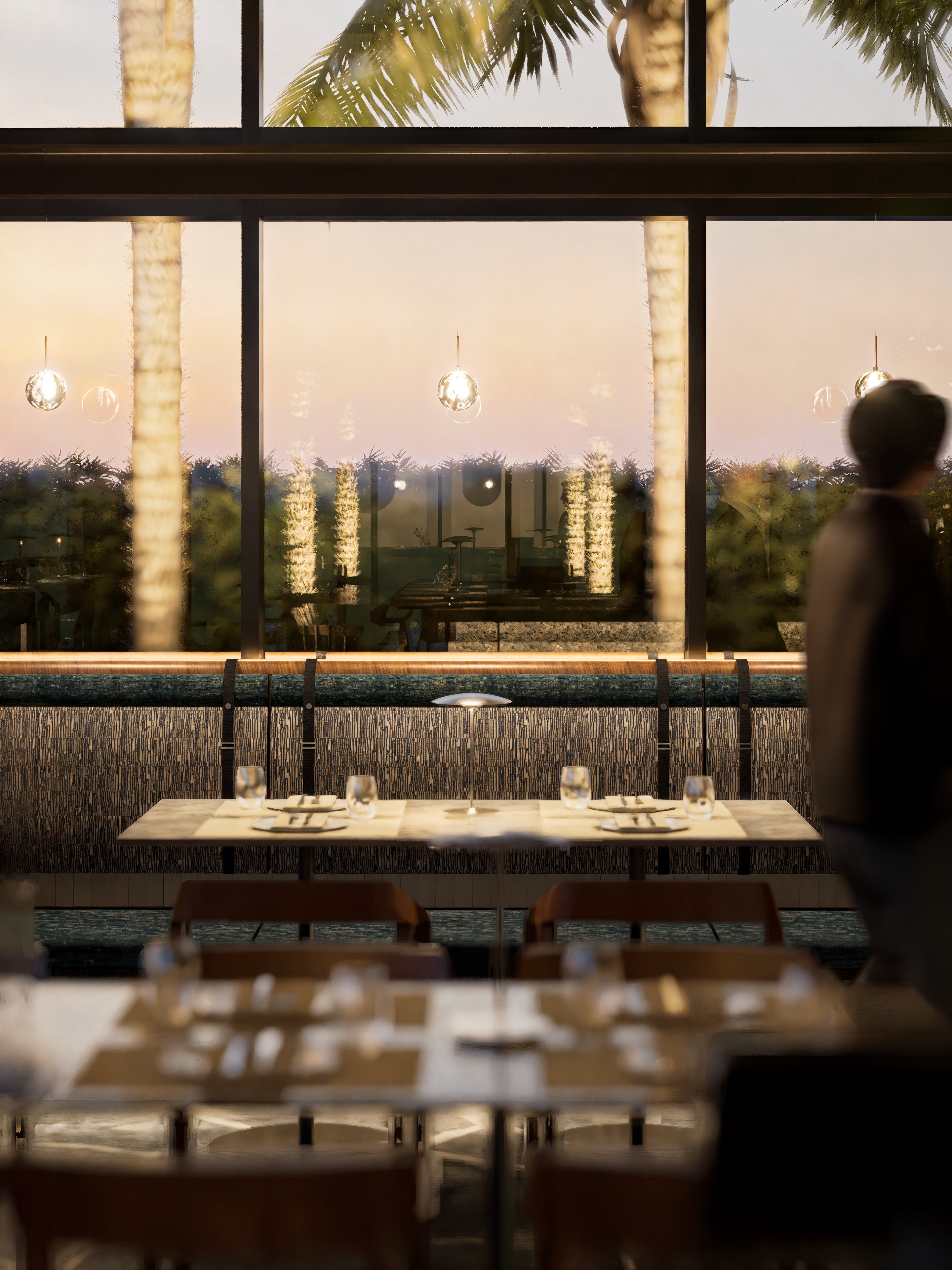 Creating a subtle reflection of its surroundings, this venue blends refined design with relaxed luxury. Our intention was to evoke versatile and indirect references to the sea and marina through carefully selected materials and transitional colours.