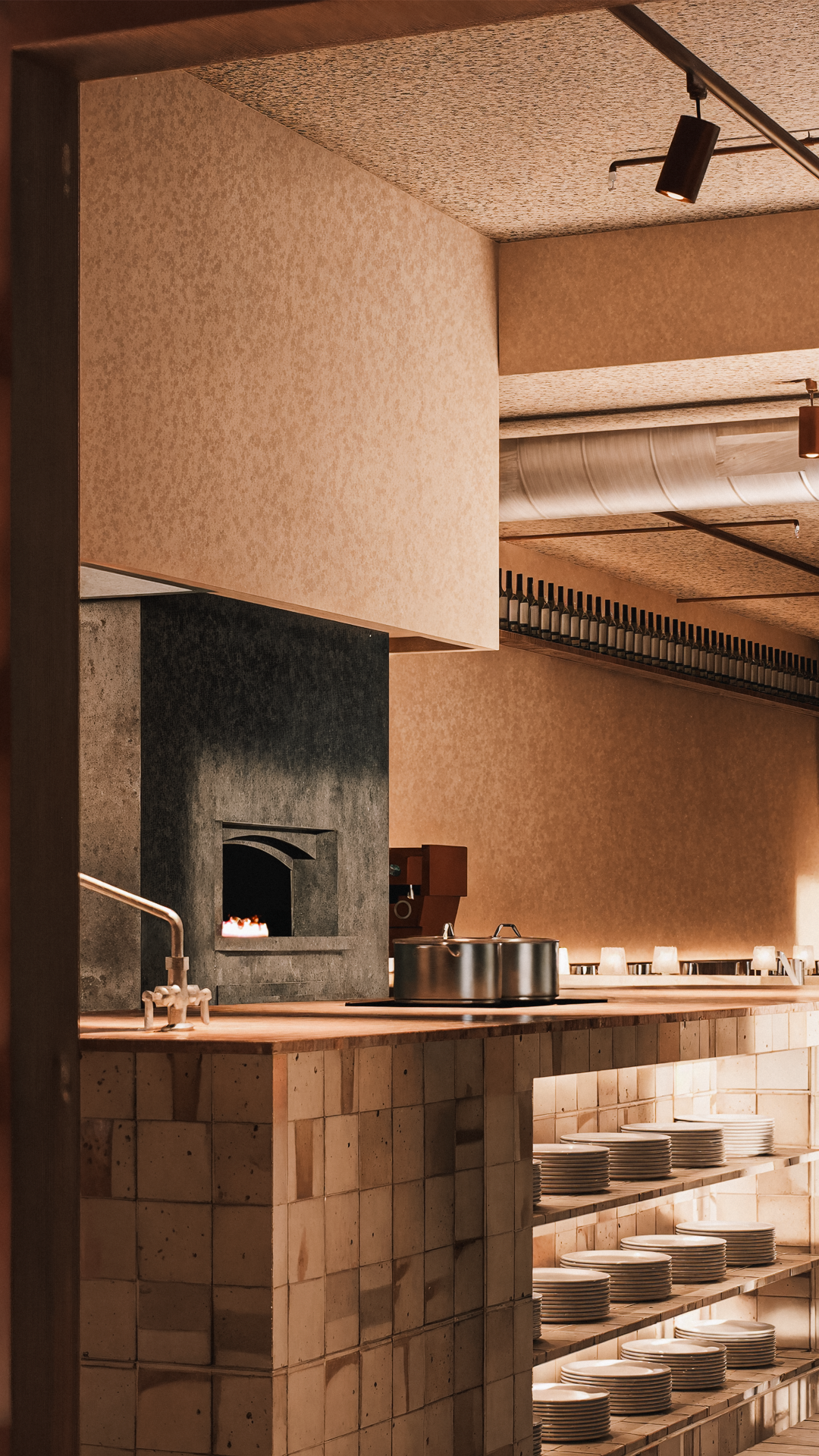 Careful attention and restraint was applied to the interactive nature of the space while maintaining operational fundamentals, allowing diner and guest to connect in a human manner, with natural, low intervention food the medium. The harmony and symphony of both service and dining combining to softly form what makes us all stay a little longer and enjoy one more; the balancing point of atmosphere and comfort.